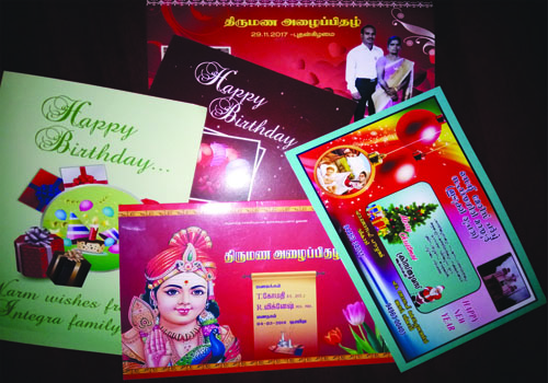 To accomplish this, we have collected an enormous amount of useful information to help you at every stage, from design to printing, binding, and delivering your wedding invitation cards. Our latest offset printing technology can handle any printing job. We specialize in printing multi-colour invitation cards in Tiruppur and Erode. We use 100 and 170 gsm art paper to print event invitation cards. You will receive the best possible customer service whenever you do business with us. Printed invitation cards appear more formal and personalized. Give the guests an invitation card that will leave them looking forward to your event. It also reaches more individuals, particularly those who do not utilize technology or social media, such as the majority of the elderly population.